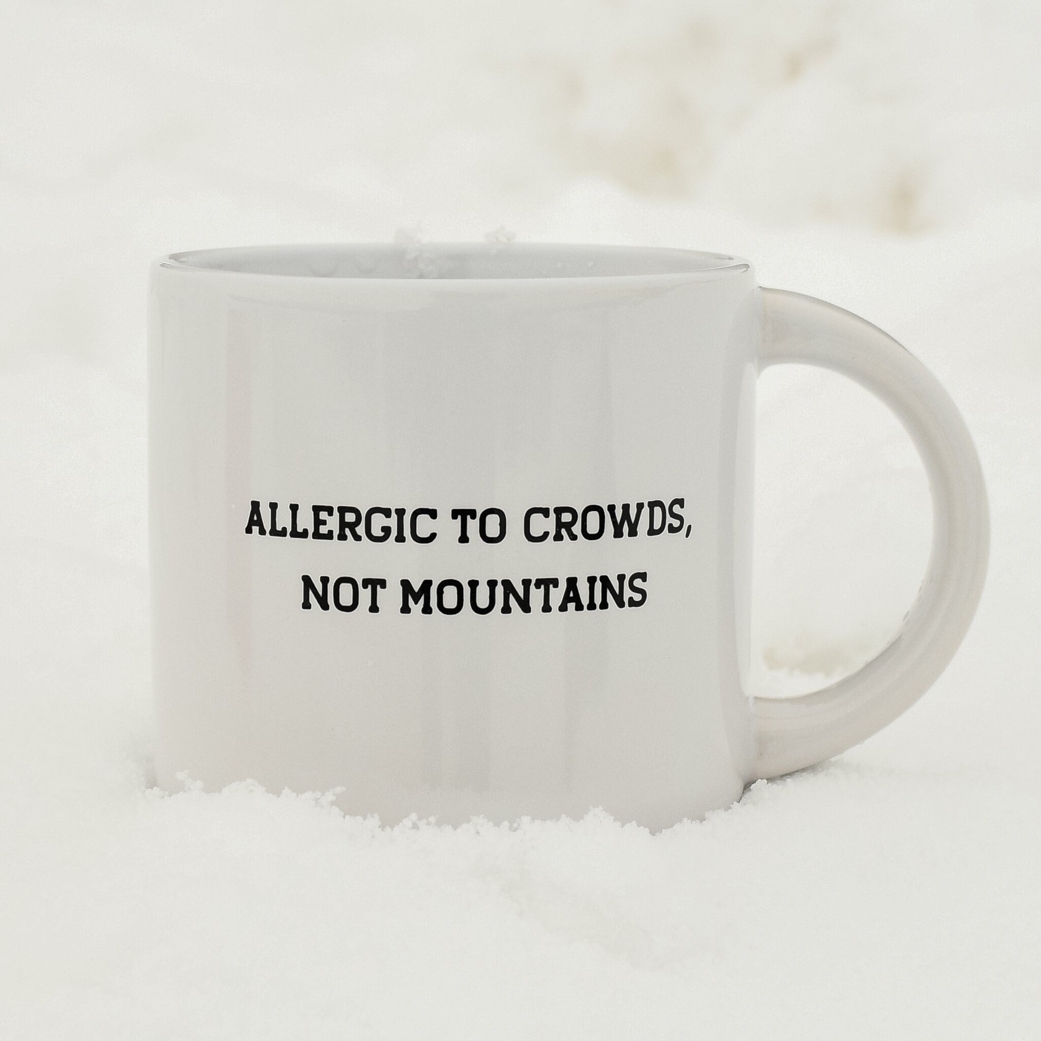 Embrace your love for solitude and nature with the 'Allergic to Crowds, Not Mountains' mug. This sturdy 14oz mug is the perfect companion for those who prefer quiet mornings over bustling brunch lines, and mountain views over cityscapes. Its durable design makes it ideal for outdoor adventures, ensuring that you can enjoy your favorite beverage while soaking in the tranquility of nature.