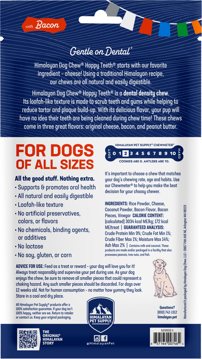 The Himalayan Happy Teeth Bacon Chew offers a delightful and effective way to maintain your dog's oral health. With a dental-density design, it ensures a thorough cleaning while your pet enjoys its savory bacon flavor. This chew is perfect for dog owners looking for a tasty yet functional treat for their furry friends.