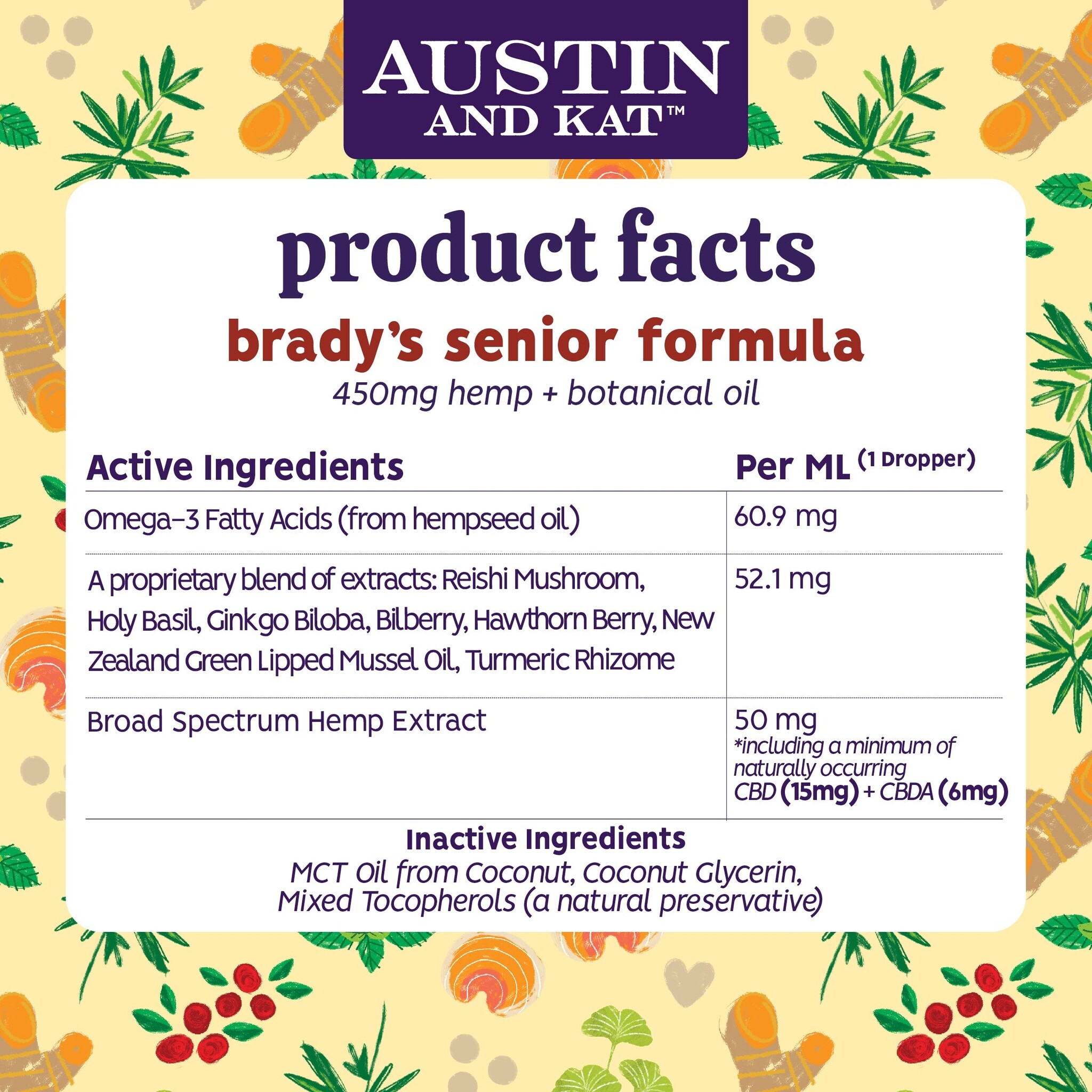 Ensure your senior dog thrives with Austin & Kat's Senior Formula Oil, designed to support cognition, eye health, and more.