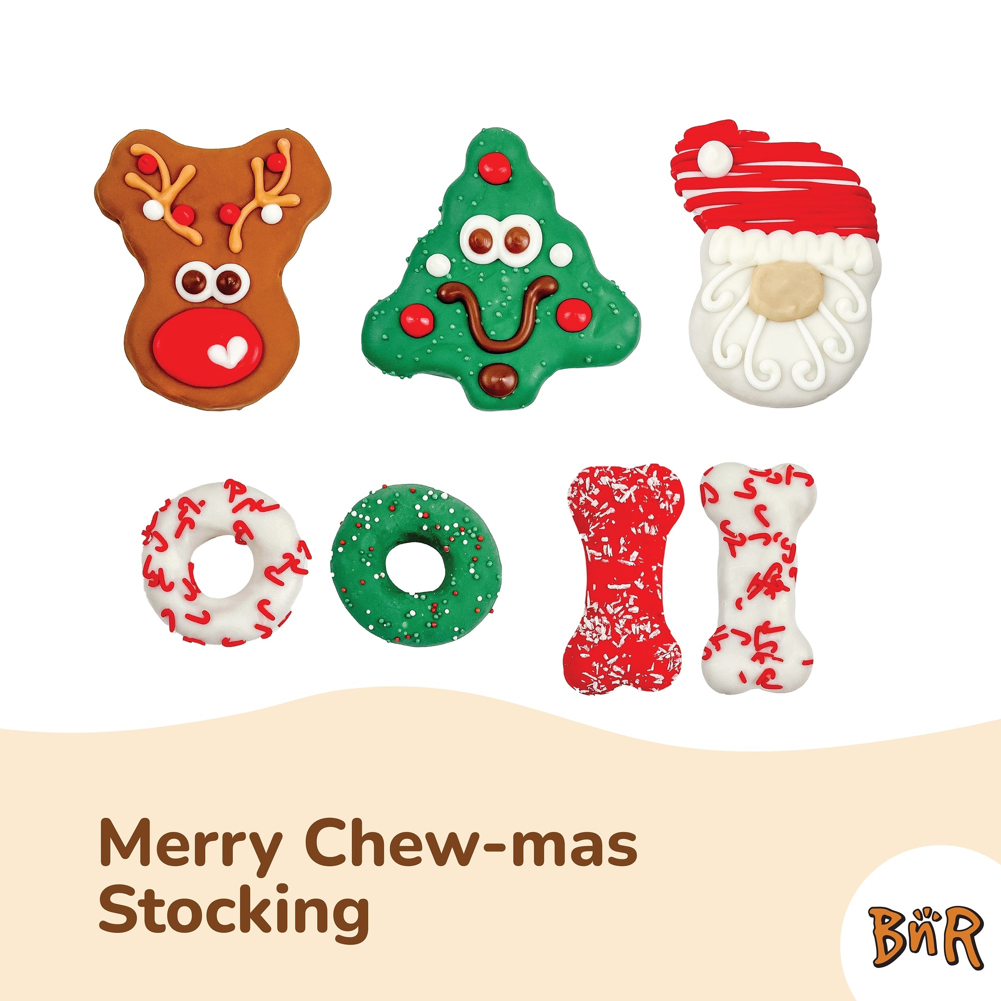 The Merry Chew-mas Stocking from Bosco & Roxy's is the perfect holiday gift for your pet. This pre-packaged treat stocking is filled with delightful goodies that your dog will love, making it a wonderful addition to your Christmas celebrations.
