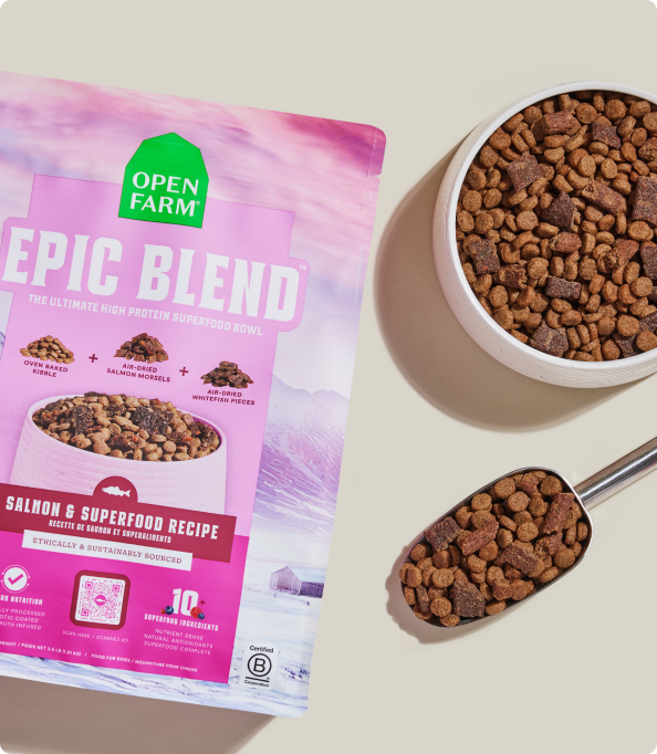 This premium chicken dry dog food blend from Open Farm offers a balanced diet by combining high-quality protein with ancient grains. Designed for optimal nutrition, it supports your dog's health with every meal.