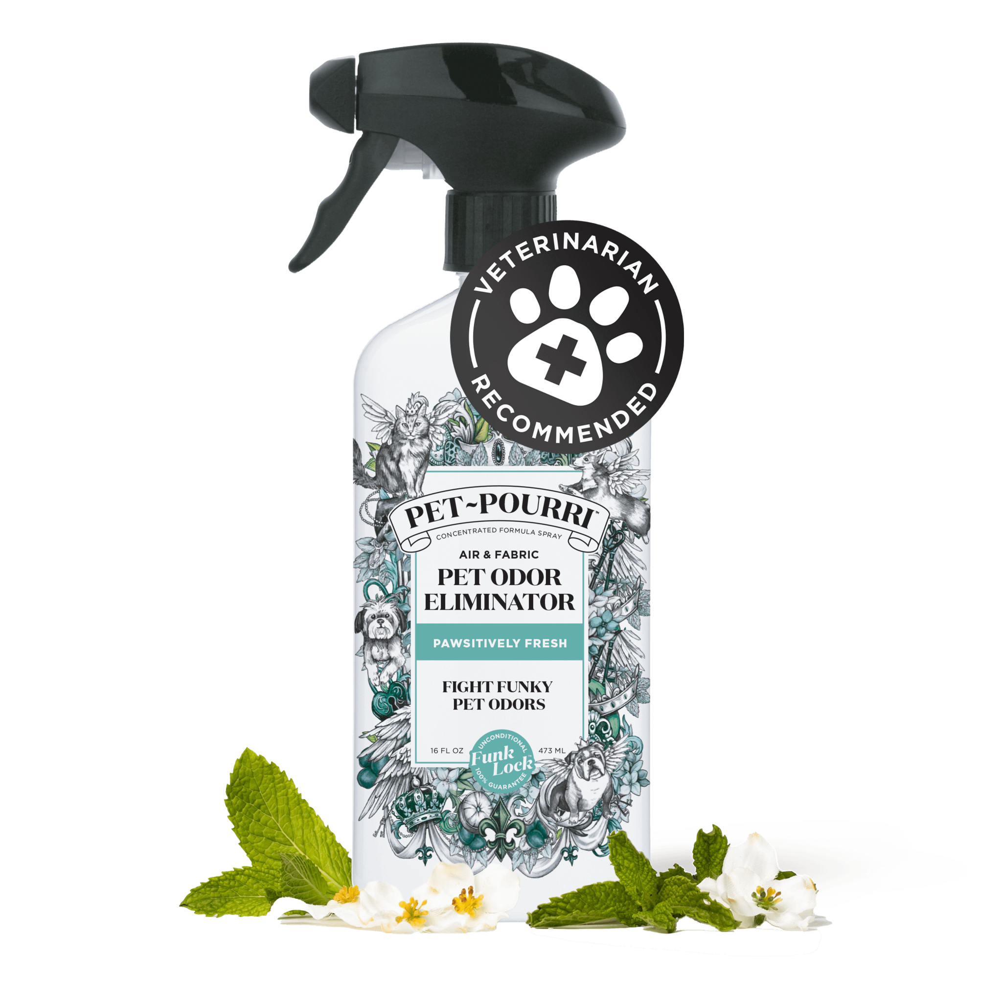Experience a breath of fresh air with Pet~Pourri's Pawsitively Fresh Room Spray. Designed to tackle pet odors instantly, this spray is safe for your furry friends and leaves behind a delightful scent.
