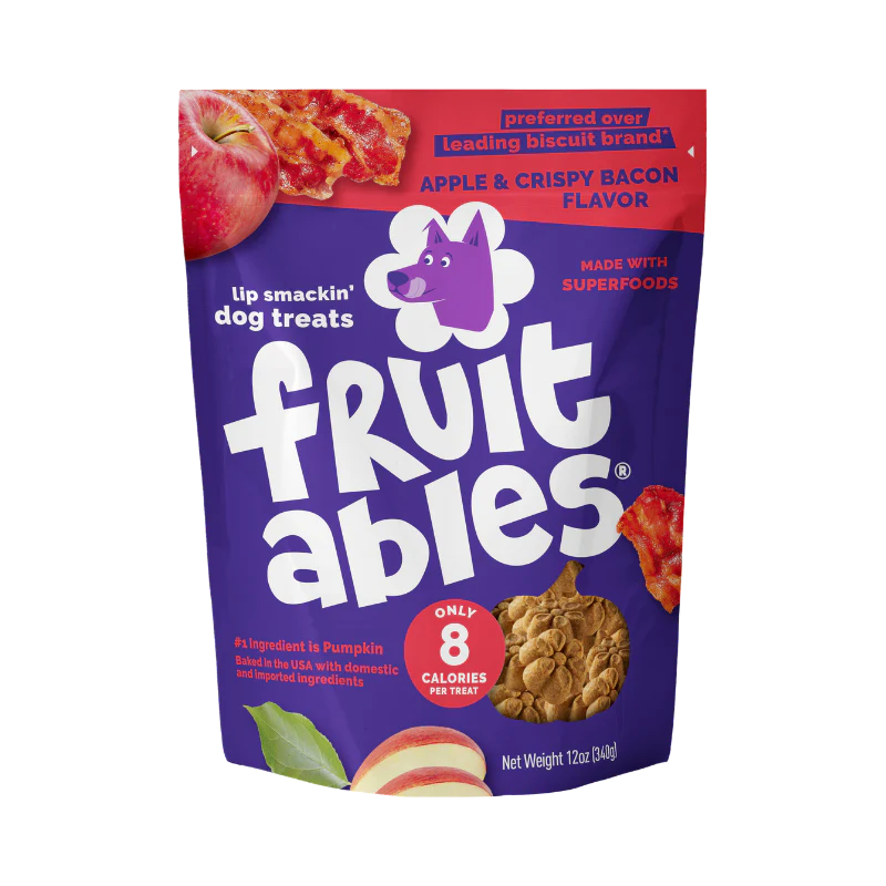 Fruitables Baked Apple Bacon treats combine the savory taste of crispy apple bacon with the health benefits of real pumpkin. These oven-baked dog biscuits are crafted with superfoods to ensure your dog enjoys a healthy and delicious snack. Each treat contains only 8 calories, making it a guilt-free reward for your furry friend.