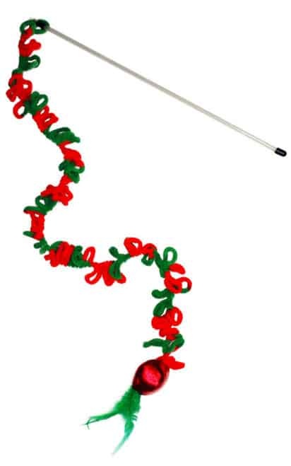 Engage your feline friend in festive fun with the KONG Holiday Teaser Loop Wand Cat Toy. This interactive toy features extra-long, soft yarn loops that encourage playful hunting and capturing, providing both mental and physical stimulation for your cat.