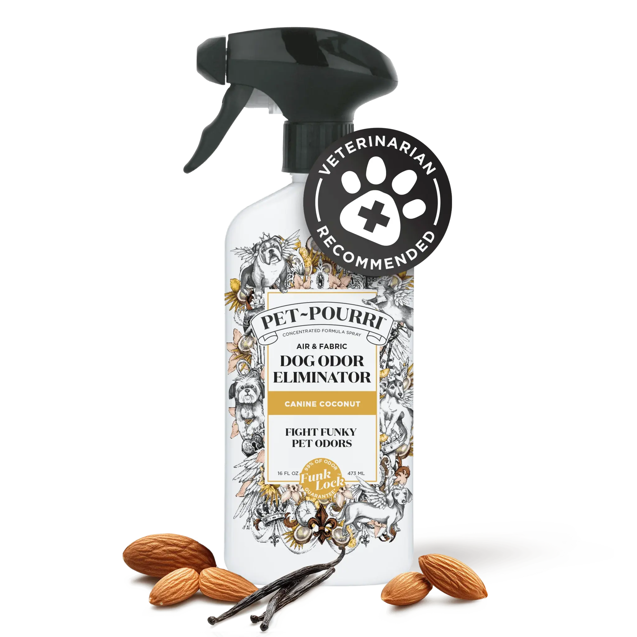 Pet~Pourri's Canine Coconut room spray is your go-to solution for tackling tough pet odors. Designed specifically to neutralize dog and pet smells, this powerful spray works wonders in the air and on various surfaces. Keep your home smelling fresh and inviting with just a few sprays.