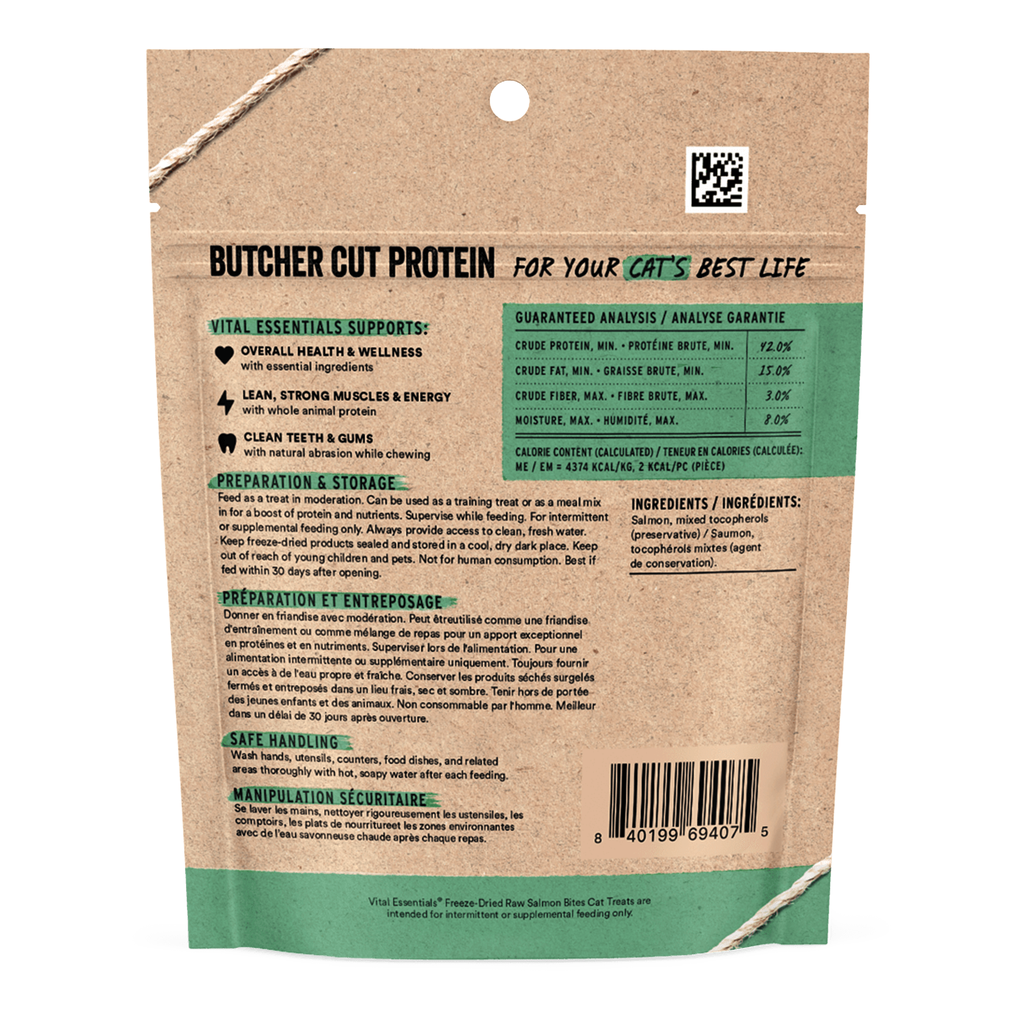 Indulge your feline friend with Vital Essentials Cat FD Treats Alaskan Salmon, packed with whole animal butcher cut protein. These freeze-dried treats are a guilt-free choice that supports muscle growth, digestive and oral health, and overall vitality.